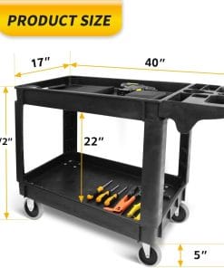 Heavy-Duty Capacity: This utility cart is designed to handle substantial loads. With a load capacity of 250 lbs per shelf or a combined total of 500 lbs, it’s ready to tackle the heaviest tasks while maintaining stability.